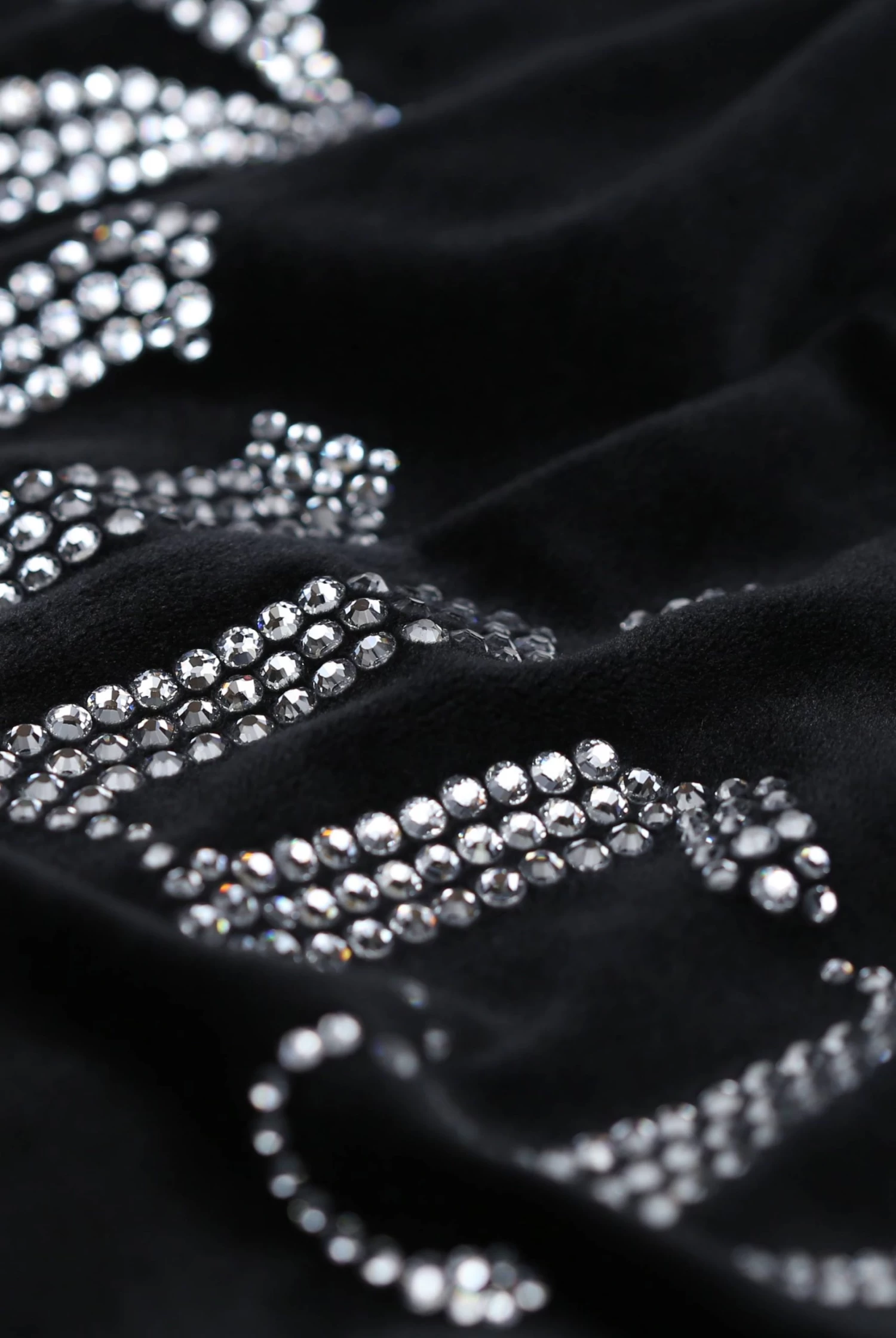 BLACK VELOUR DIAMANTE FLARED PANTS