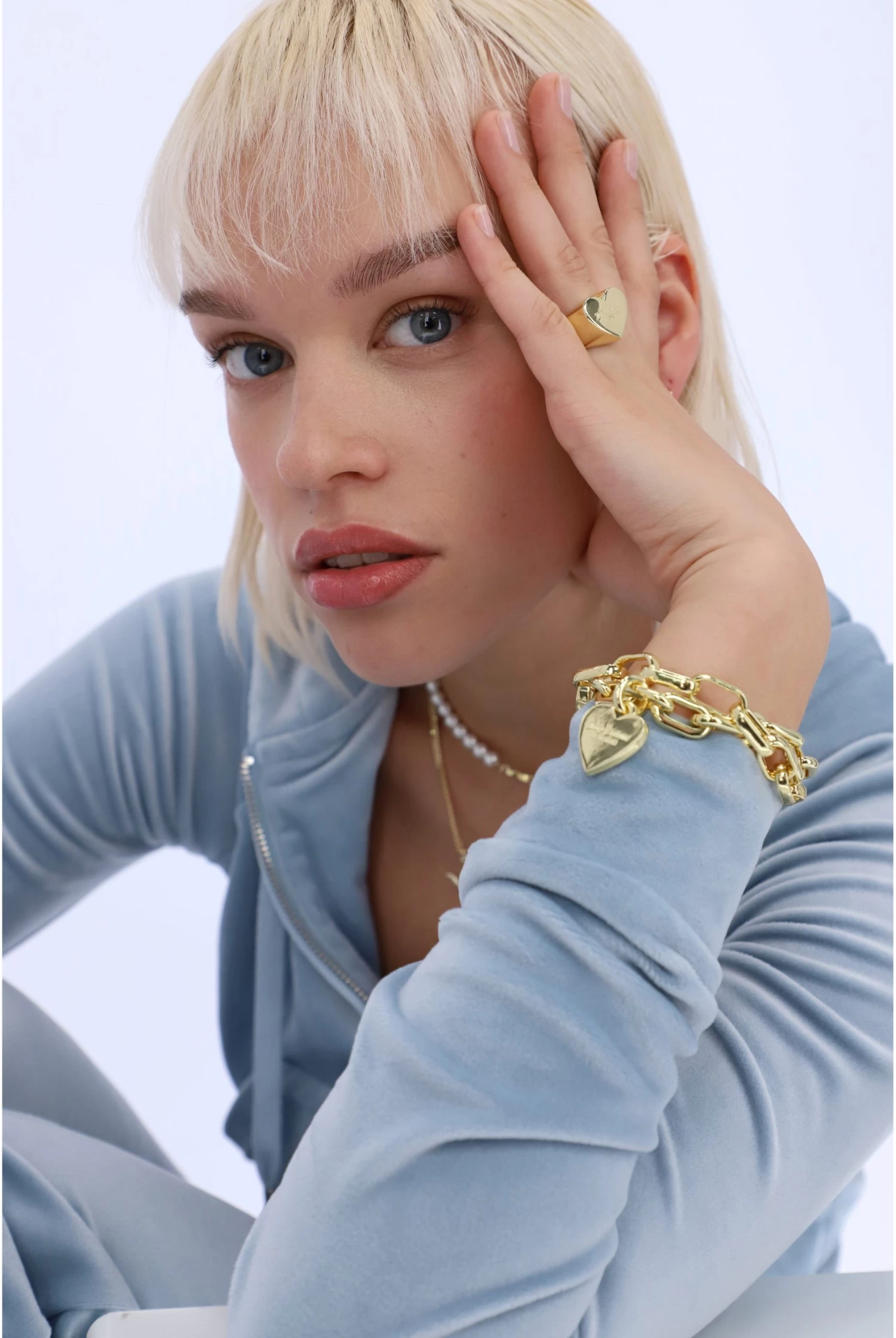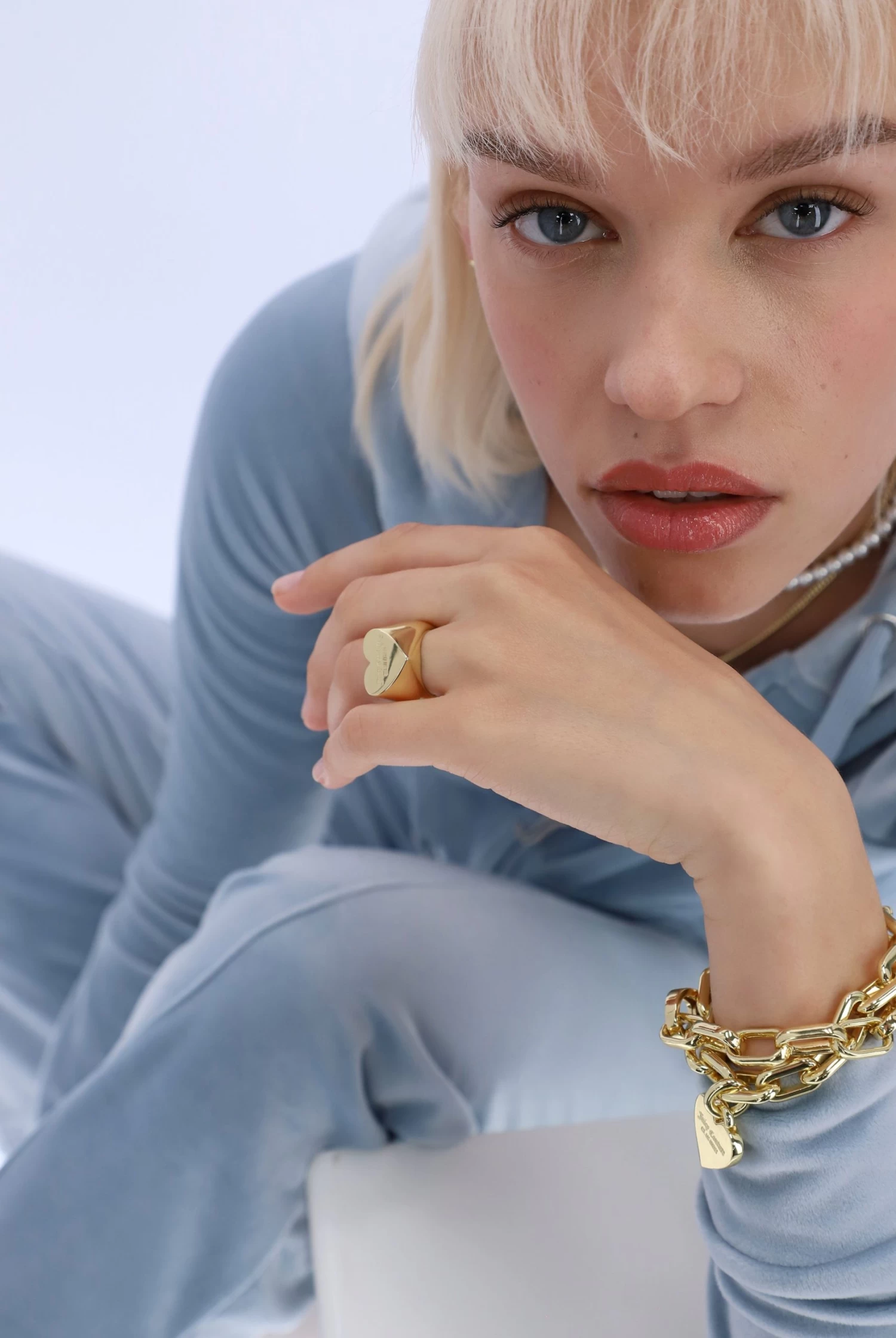 18k gold plated bold chunky heart shaped ring featuring subtle Juicy Couture logo engraved to the centre of heart.