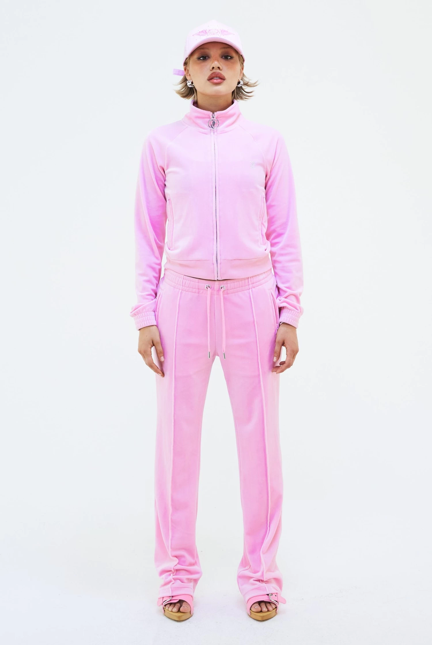 BEGONIA PINK VELOUR DIAMANTE TRACKSUIT BOTTOM