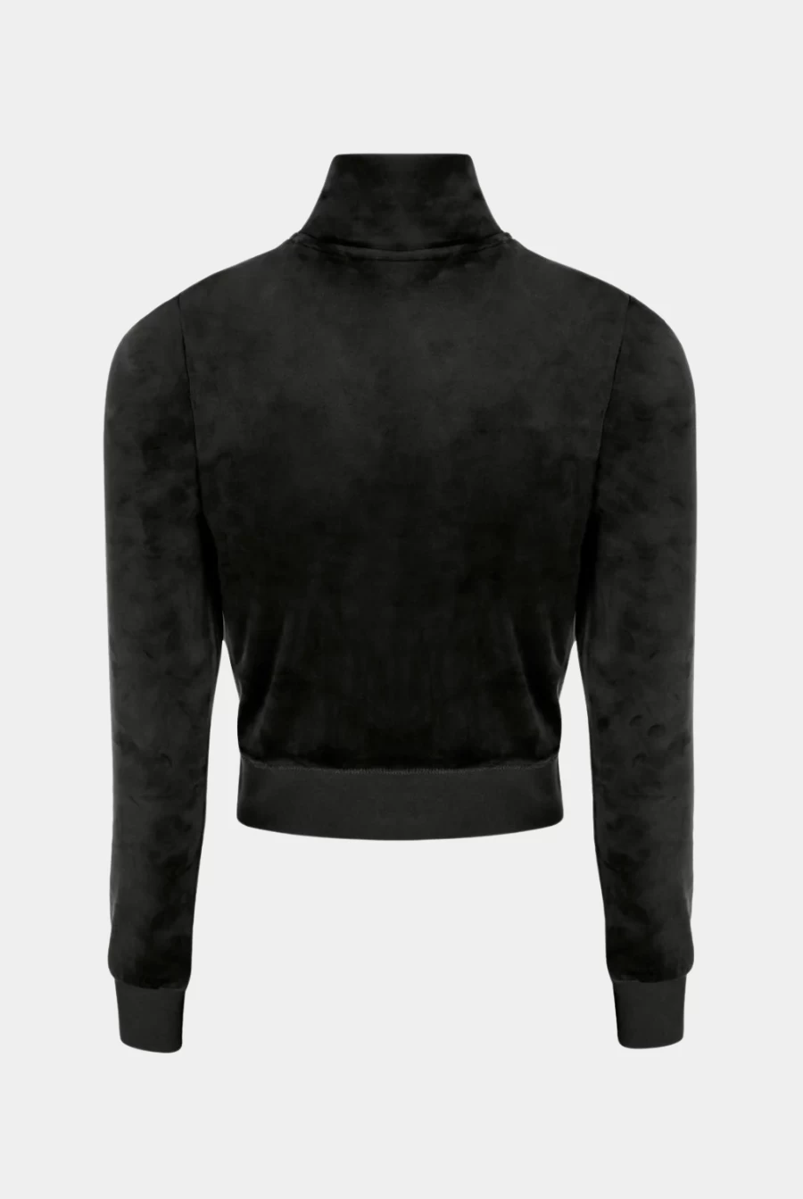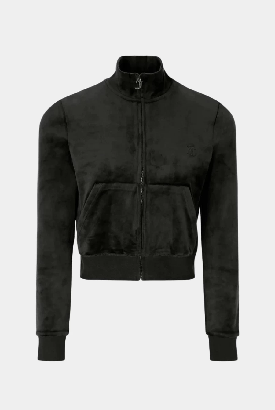 Part of the Black Label collection; slim fit track top in black classic velour . This zip-through high neck track top features a statement gothic J zip pull and is branded with a tonal embroidered JC logo at the chest