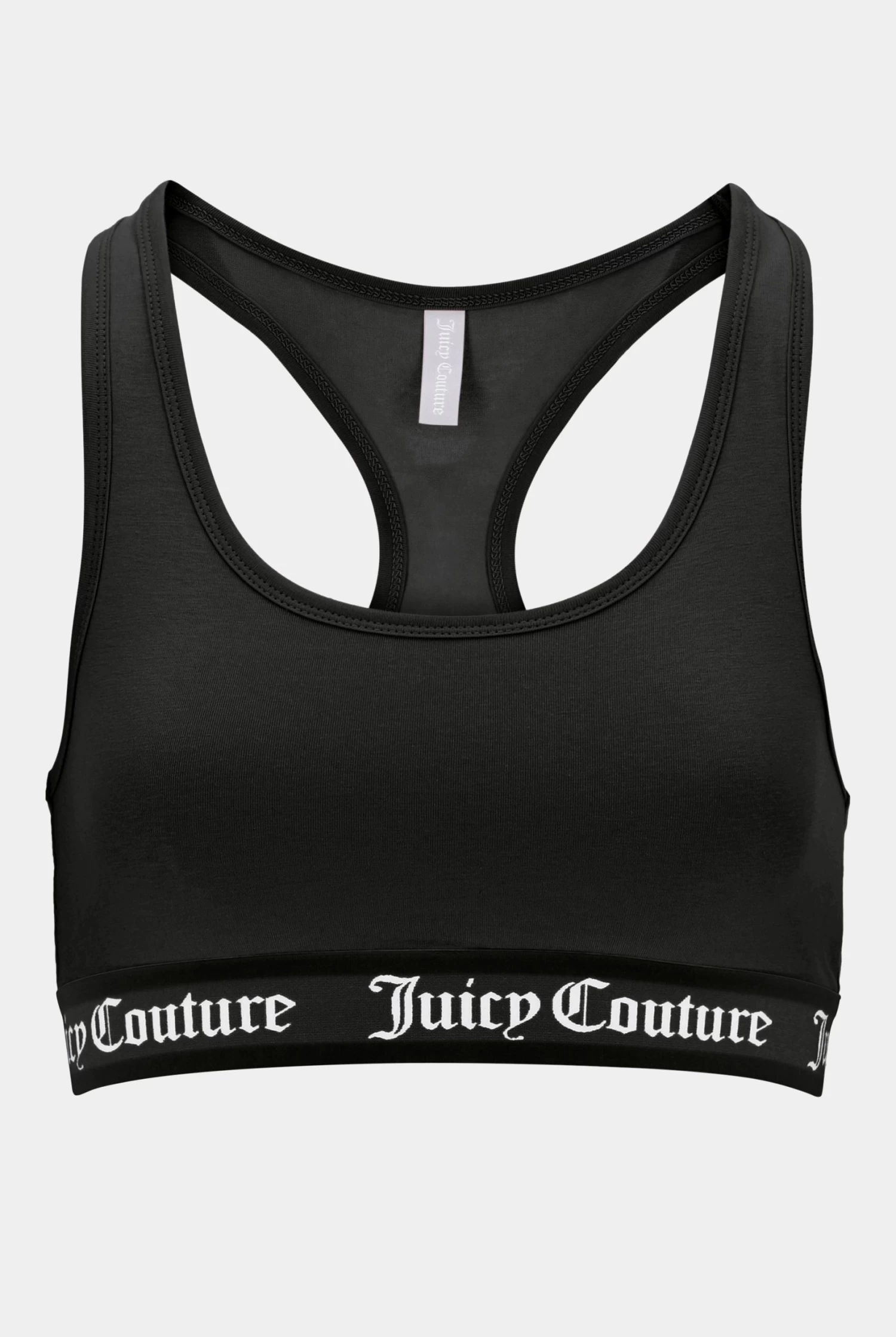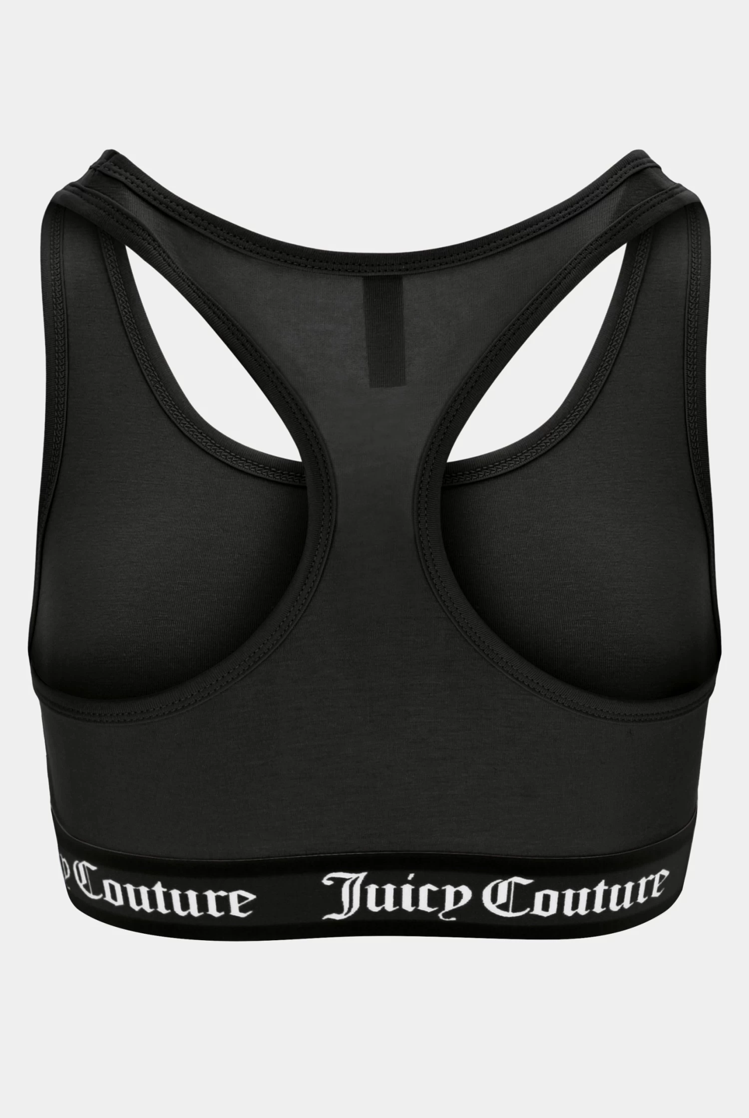 Scoop front racer bra in black cotton. This bra features a double layer for soft support through front and is branded with a soft jacquard elasticated hem. Pair with the matching bottoms for a relaxed loungewear look.