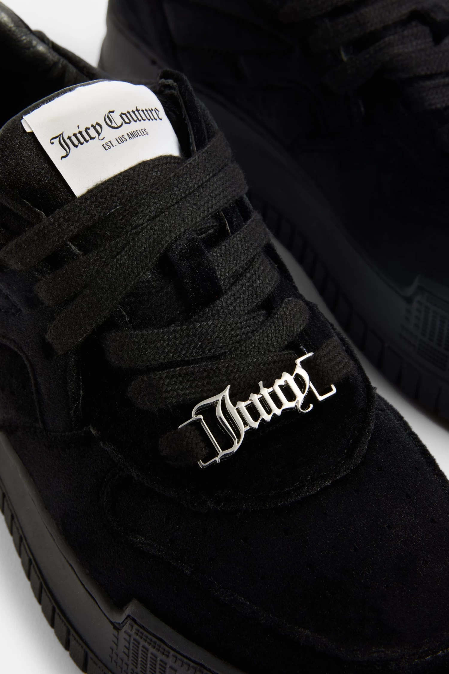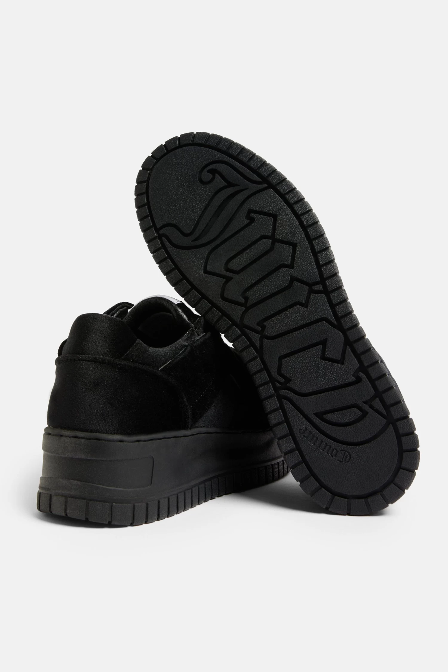Stacked hightop sneaker in black velvet. This iconic Juicy sneaker features a branded rubber outsole and woven tongue label and a ‘Juicy’ logo lace plate.