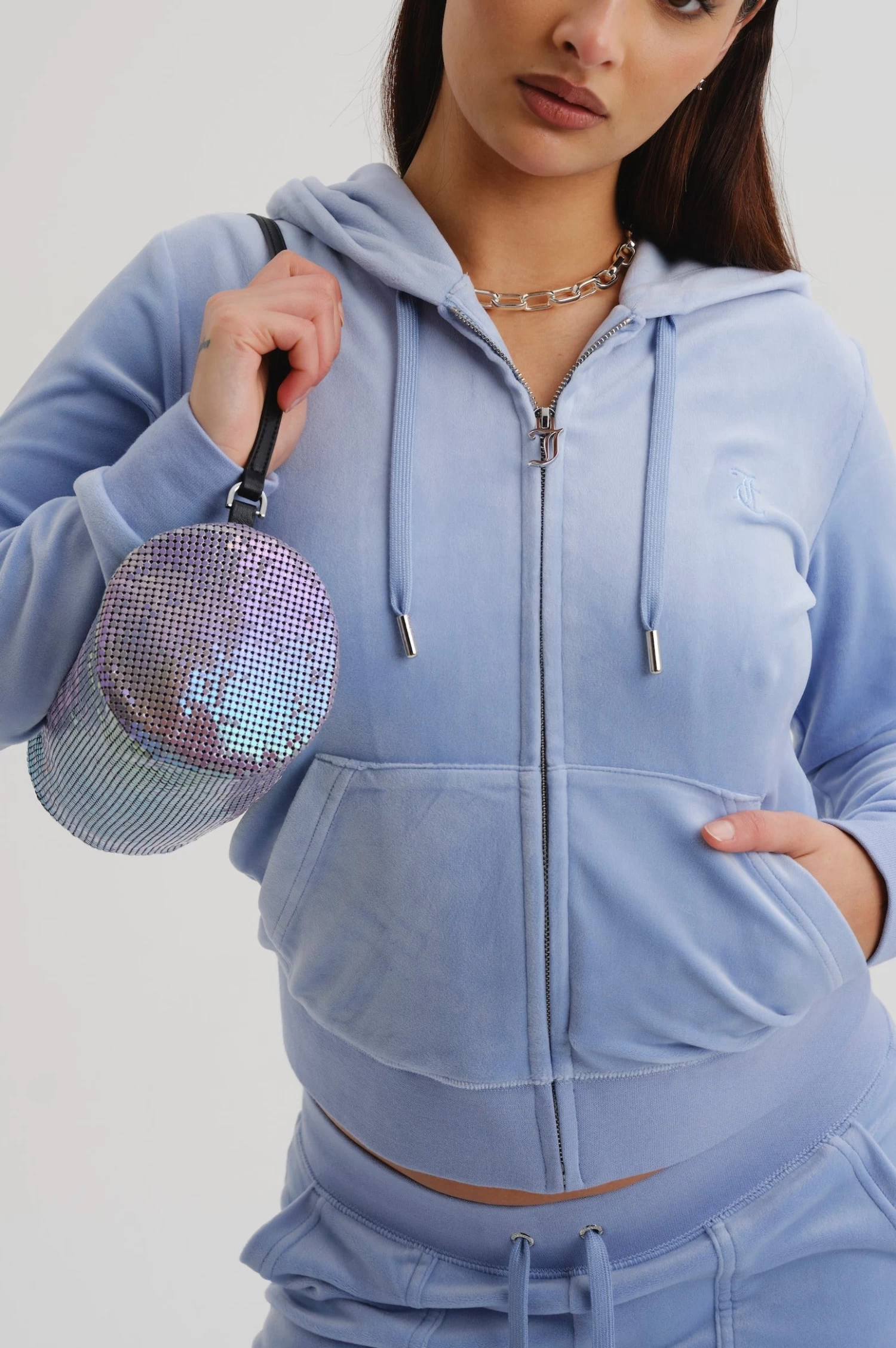 Our legendary zip through hoodie in della robia classic velour. Part of our Core collection; slim fit, with kangaroo pocket and a self-fabric lined hood, this hoodie features a statement gothic J zip pull and is branded with a tonal embroidered JC logo at the chest.