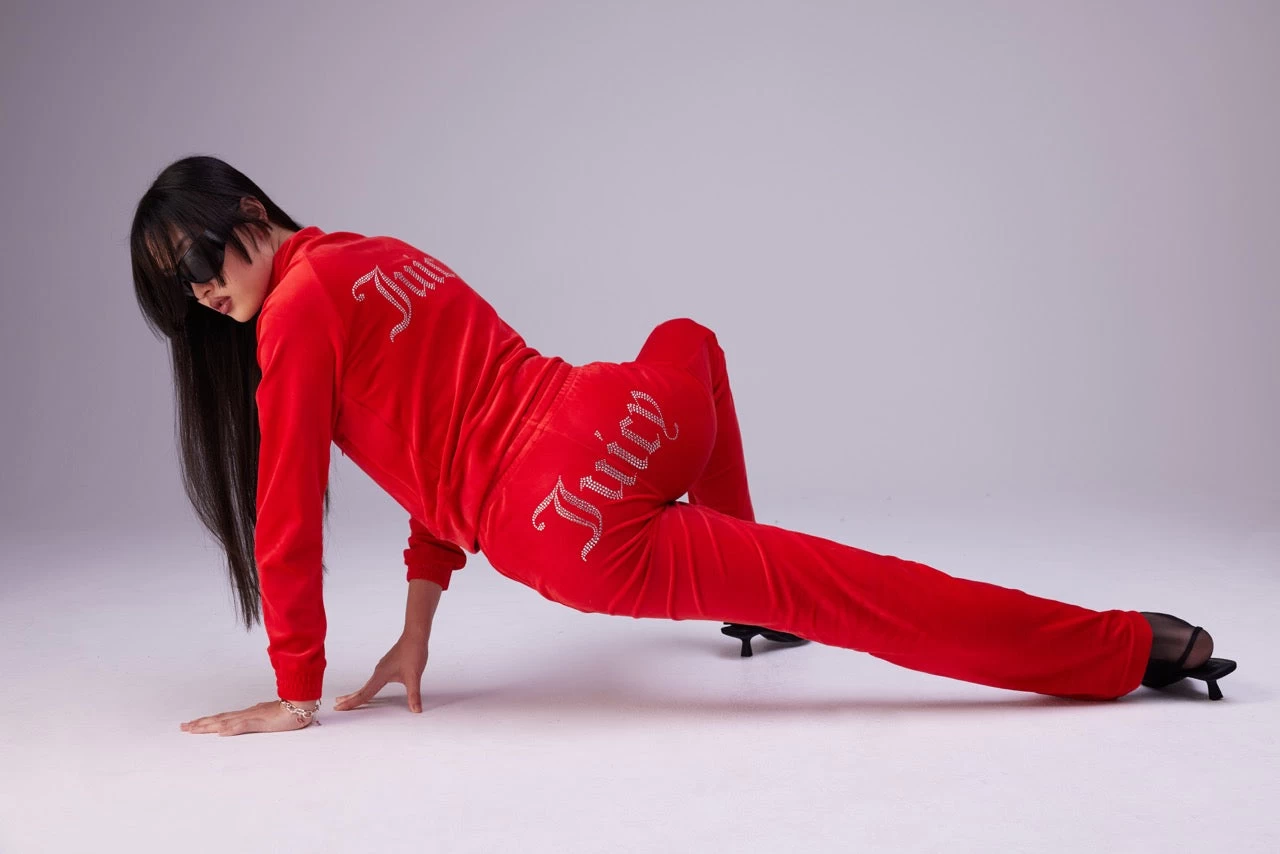 GOJI BERRY VELOUR DIAMANTE TRACKTOP