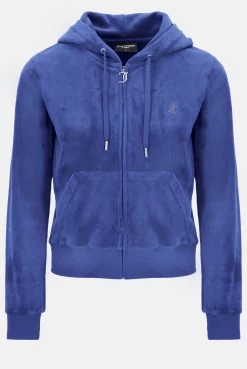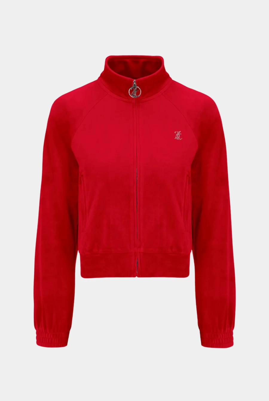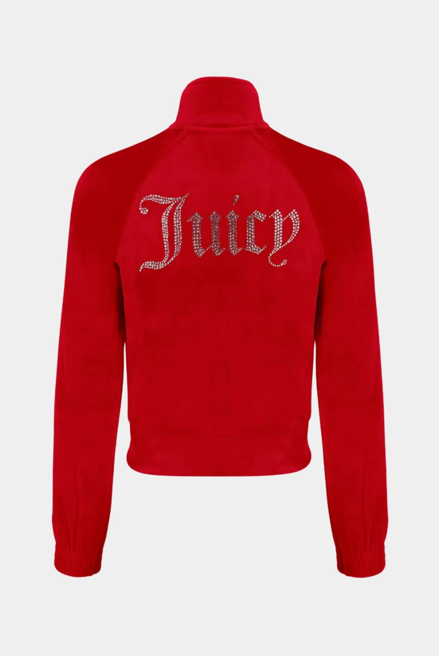 Diamante embellished track top in gojiberry classic velour. Slim fit zip-through style with a high neck, zipped pockets, smocked cuffs and a statement diamante logo branding on the back. This track top is finished with a silver branded round zip pull. Pair with the matching bottoms for a full iconic Juicy Couture tracksuit.