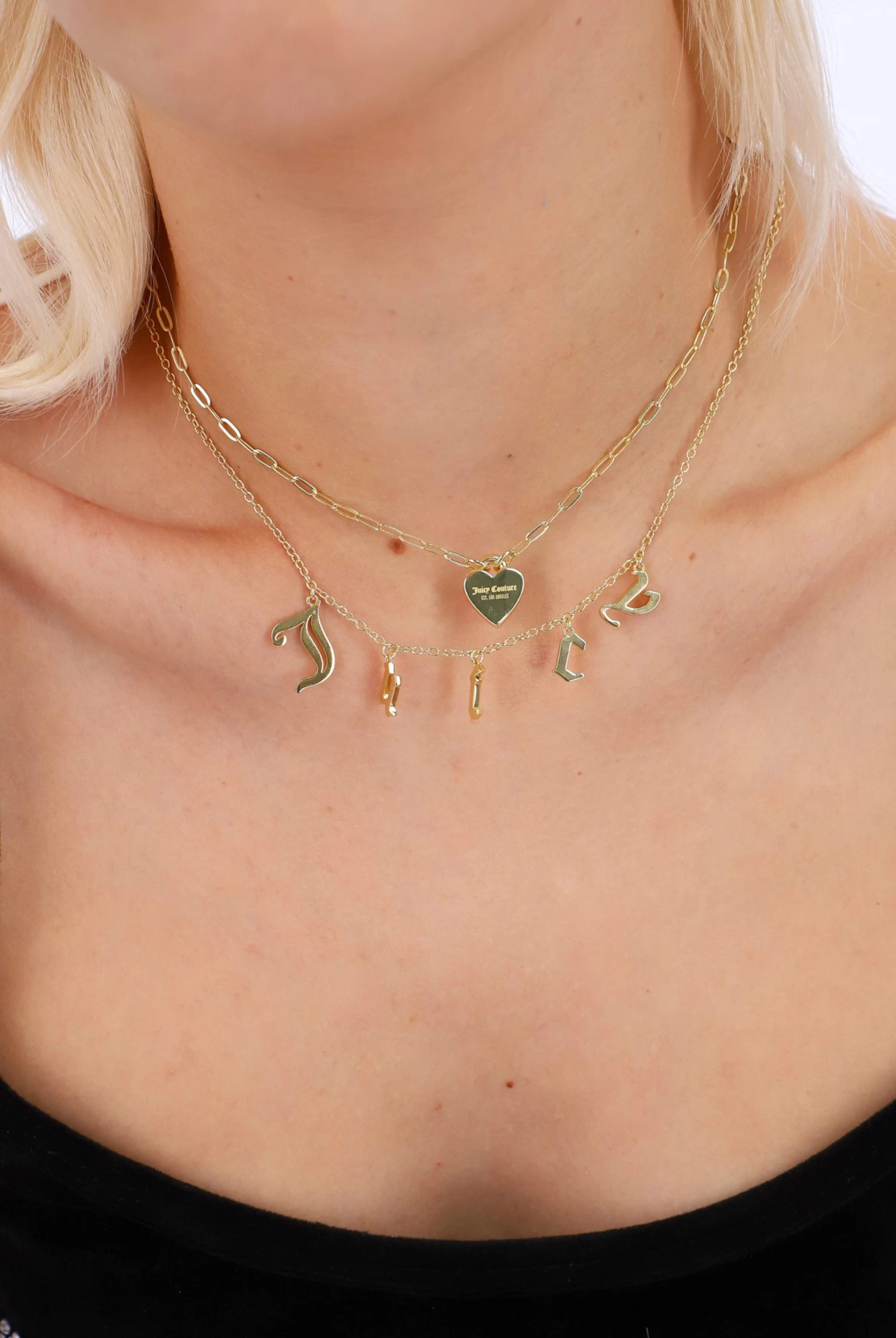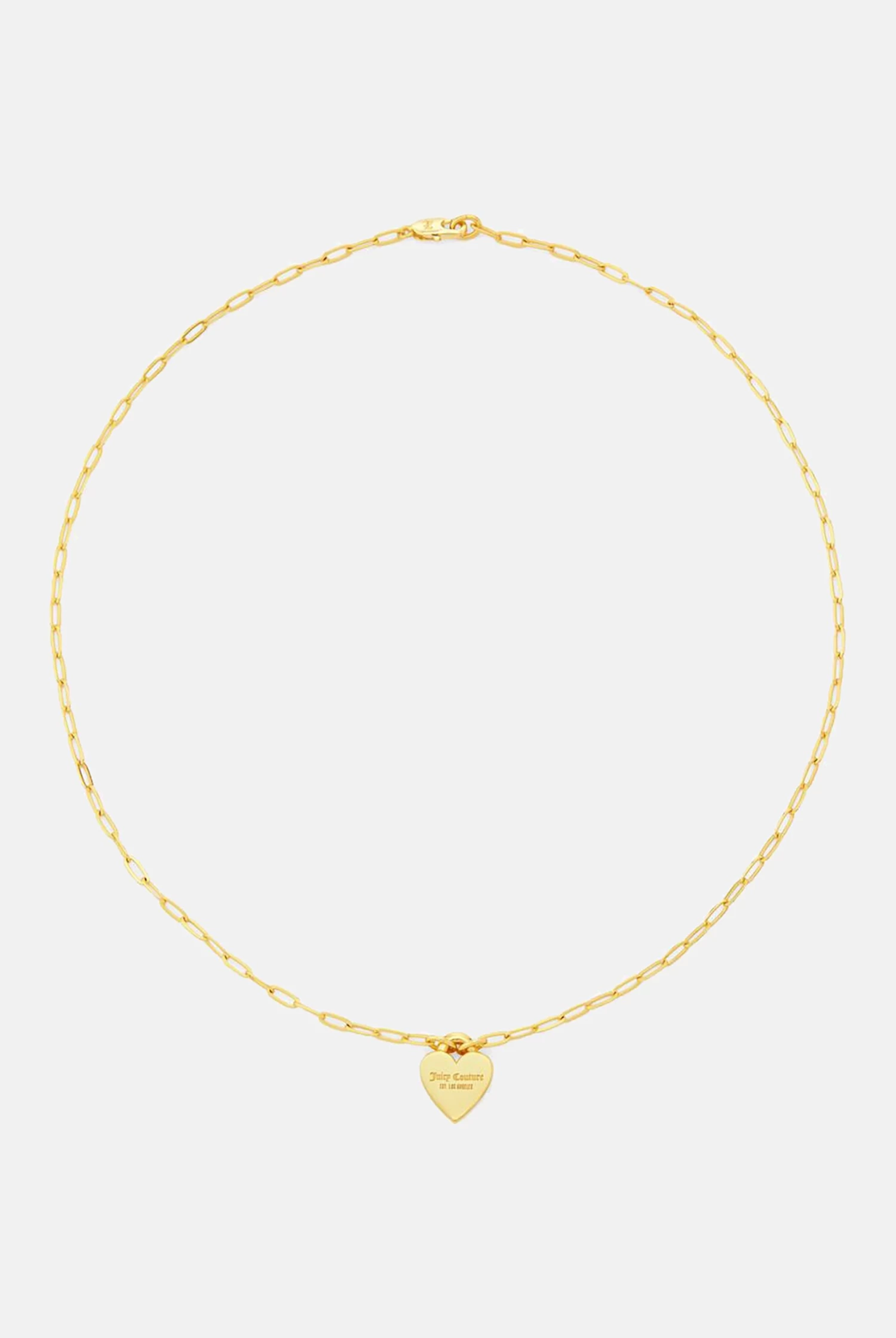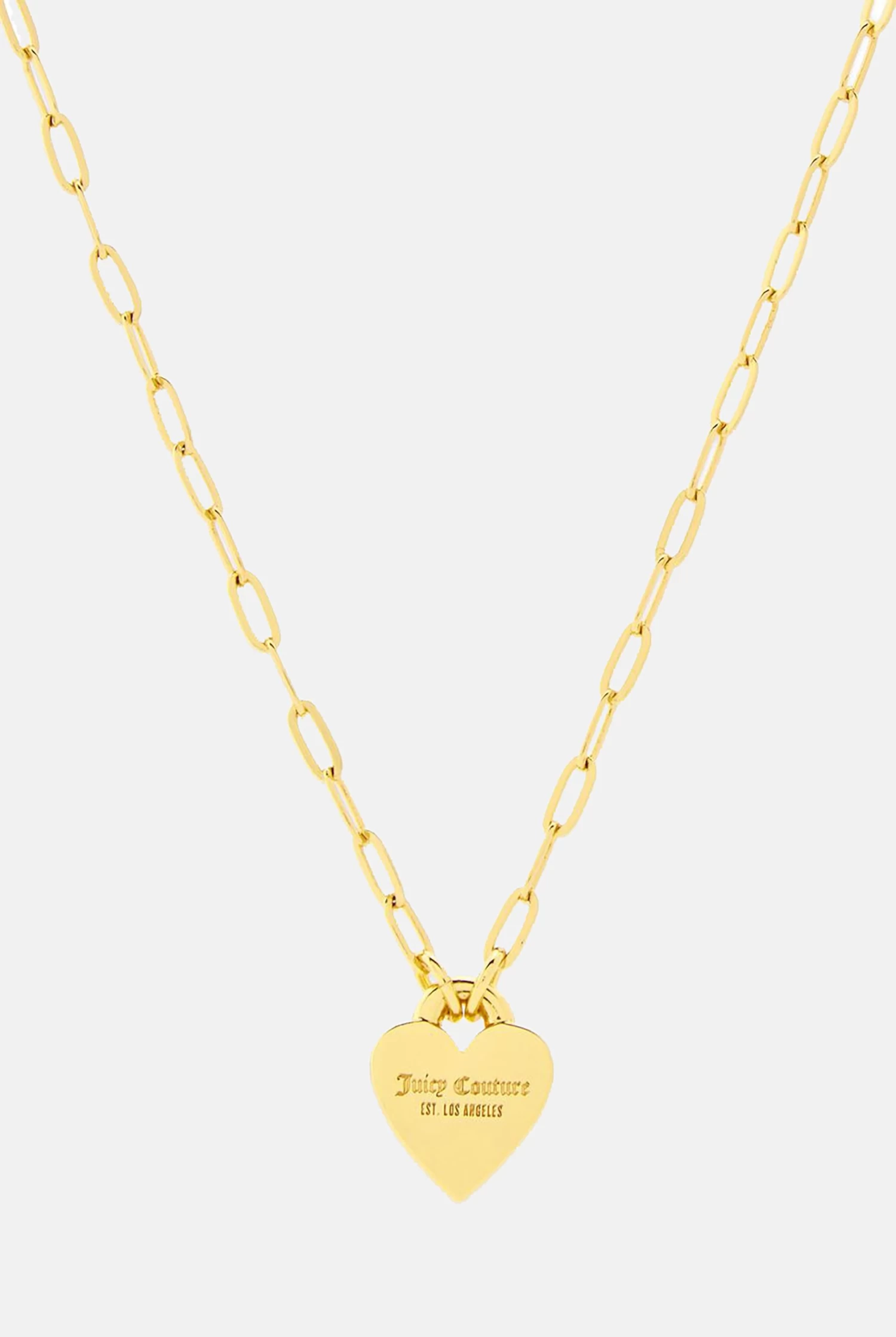 Gold mini heart pendant featuring the Juicy Couture logo engraved to the centre of heart complete with a gold link chain finished with a mini JC charm to the clasp. Complete the look with matching gold heart earrings.
