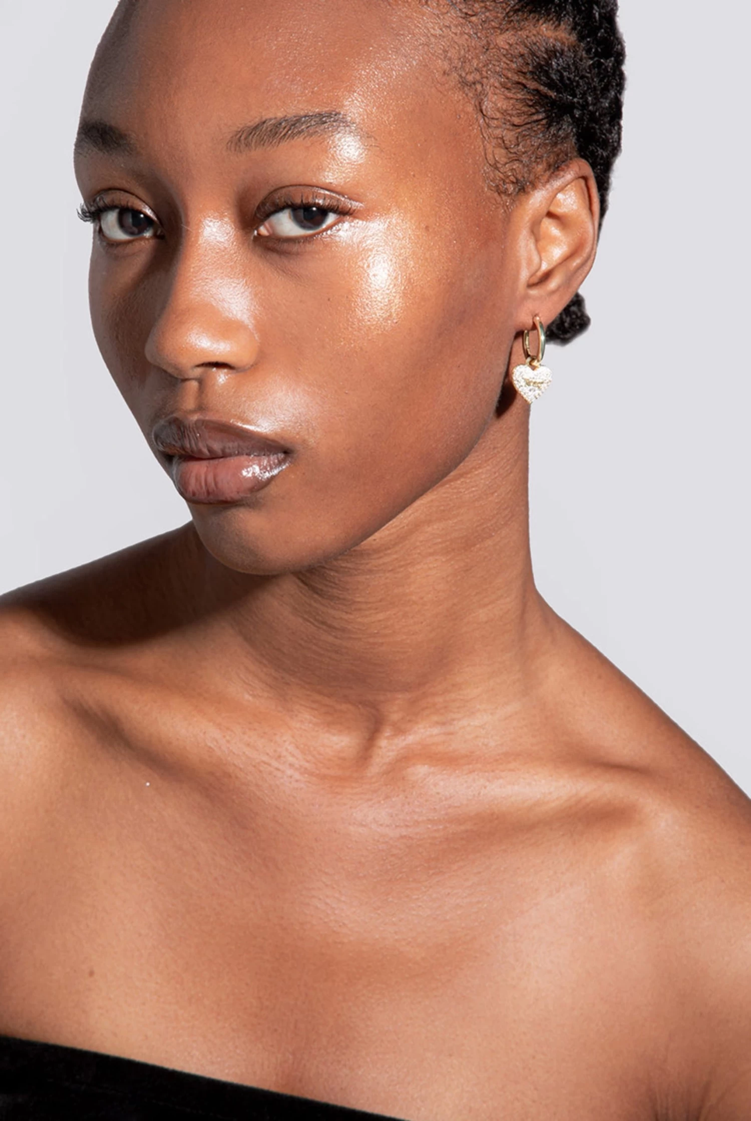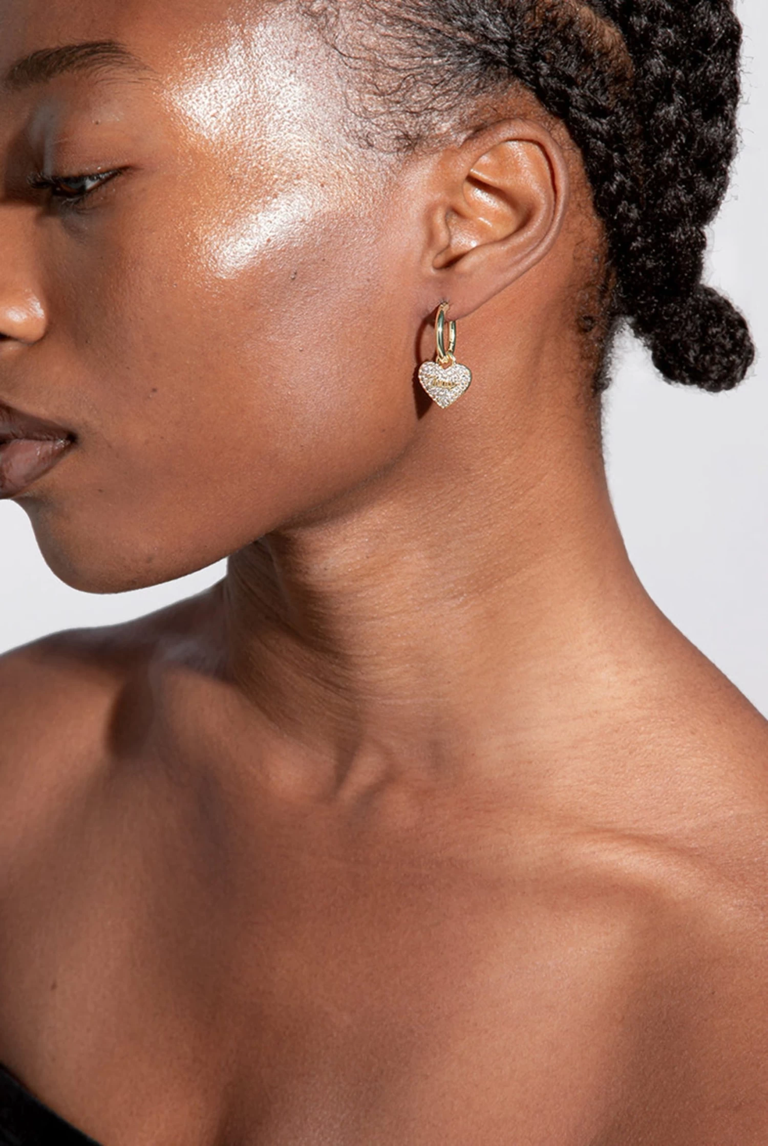 GOLD PAVÈ CRYSTAL HEART DROP HOOP EARRINGS