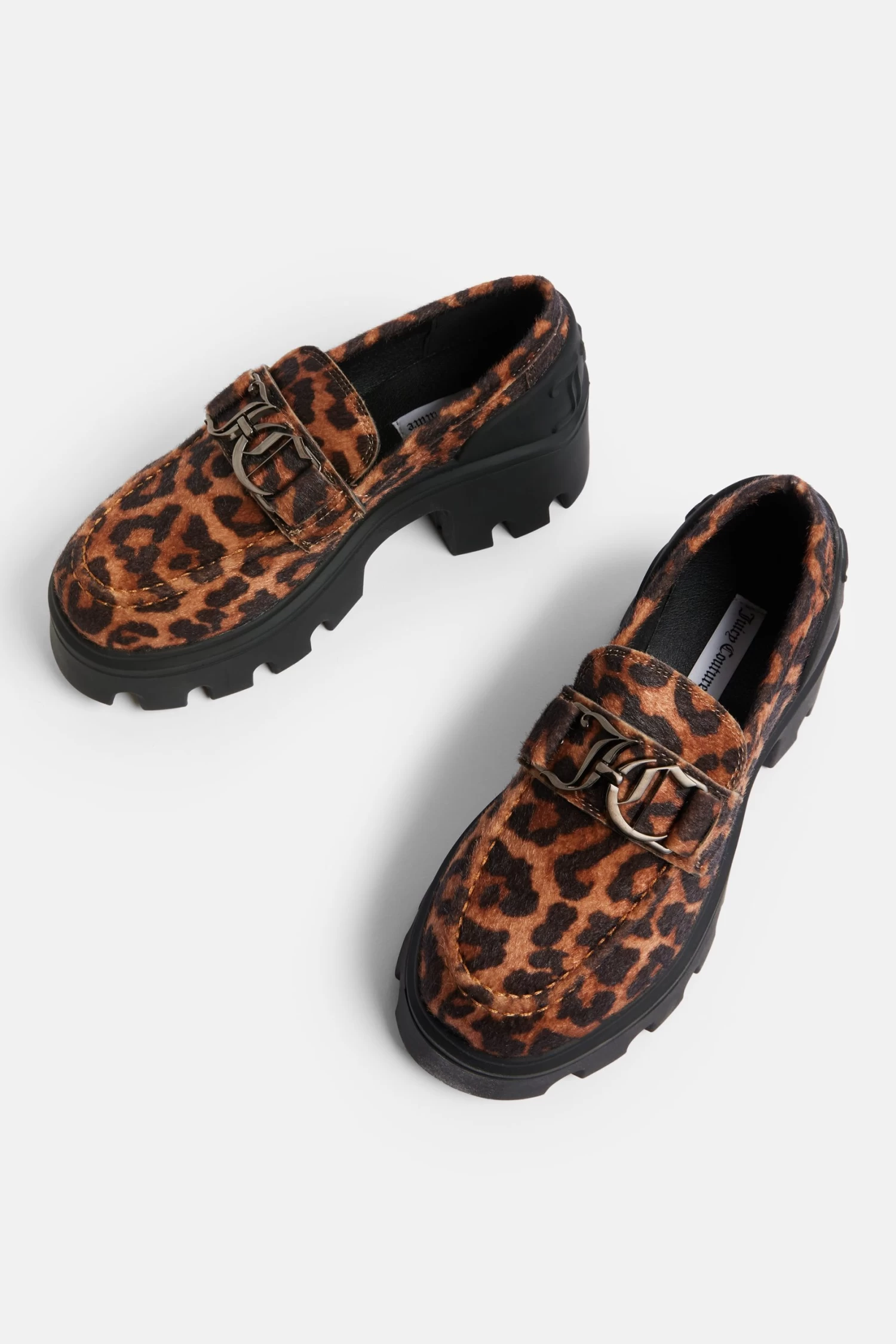 Track loafs in leopard leather mix. This heavt tred loafer features a leopard print hair-on leather upper with ‘JC’ linked silver hardware and a branded rubber outsole and eva cupsole.