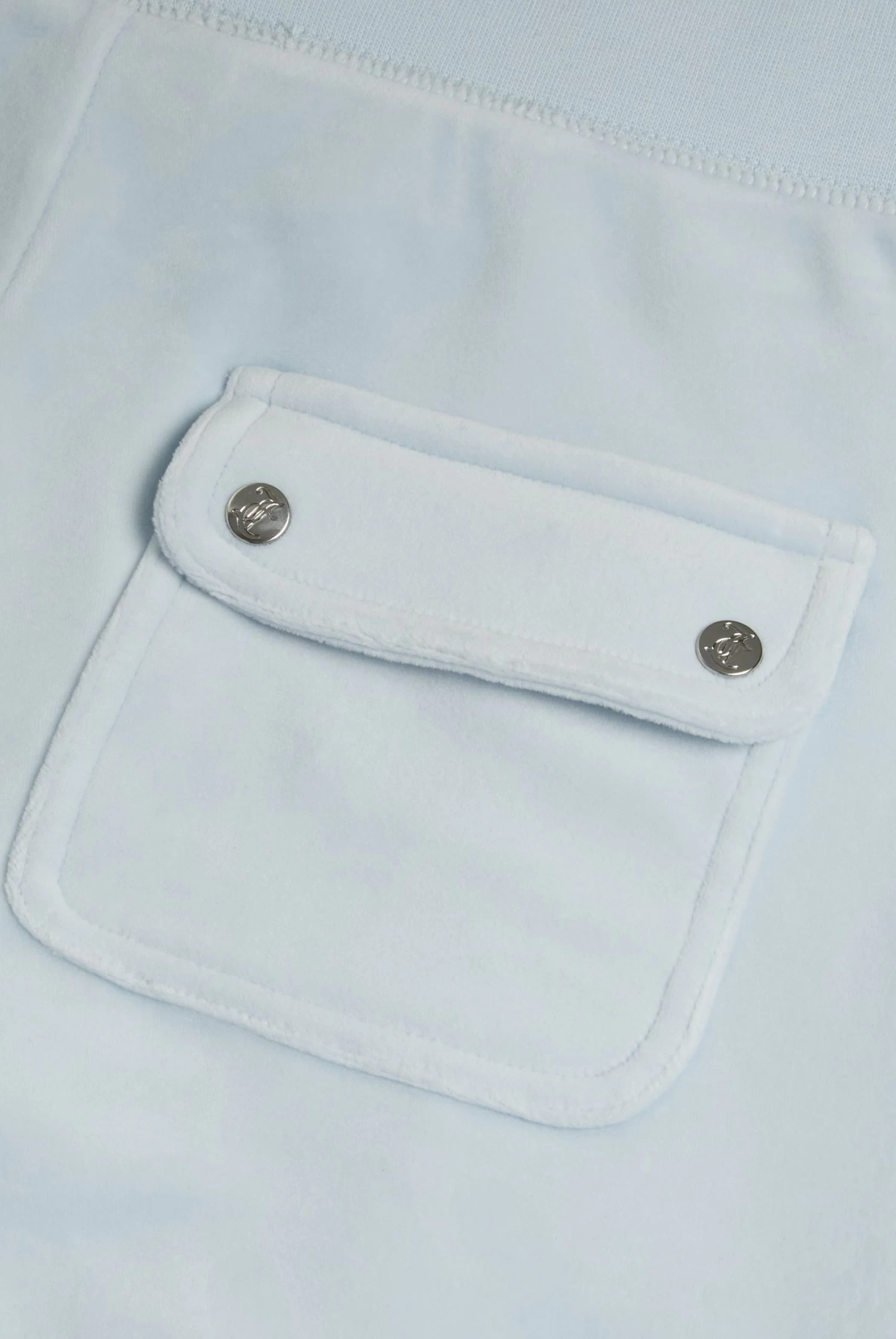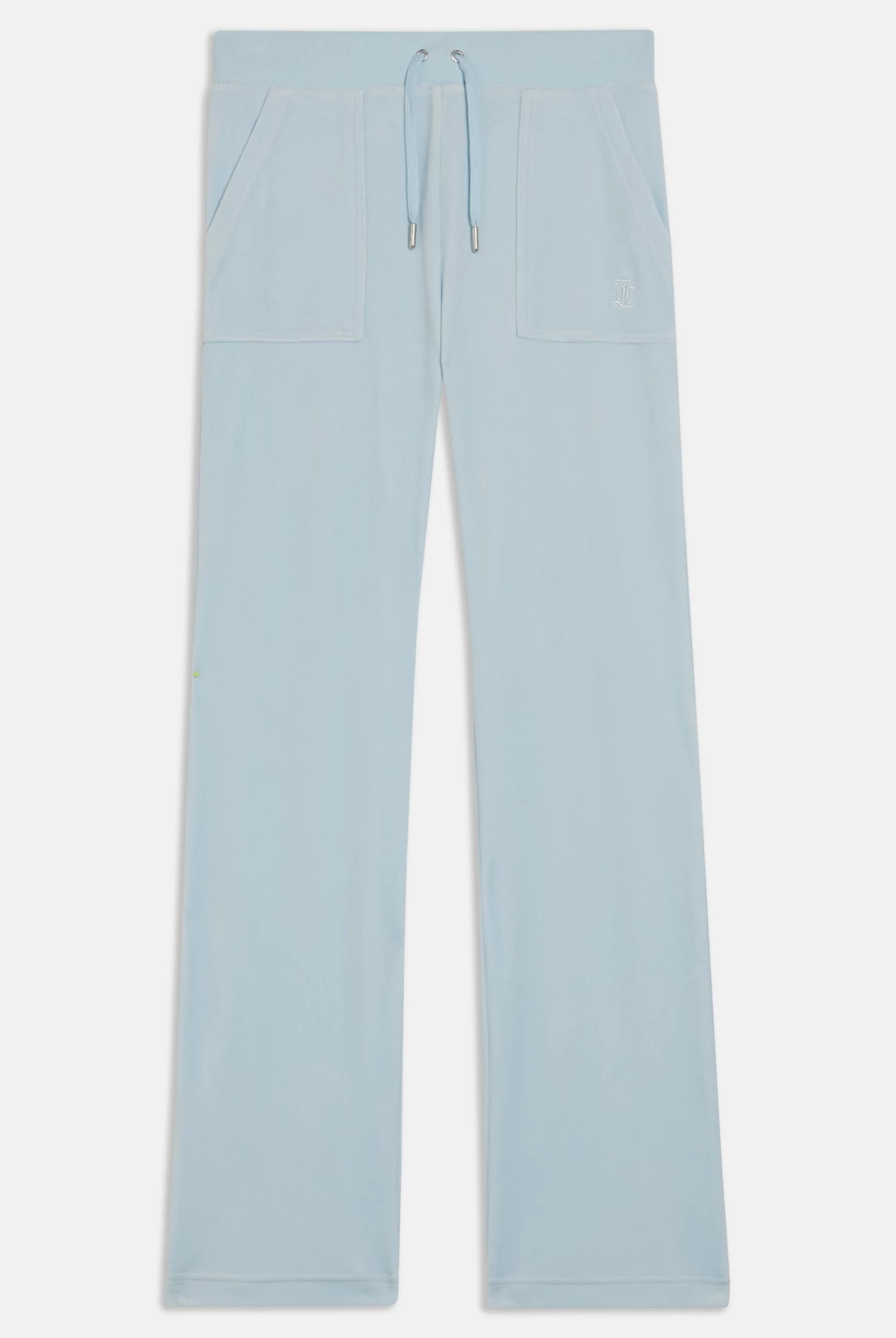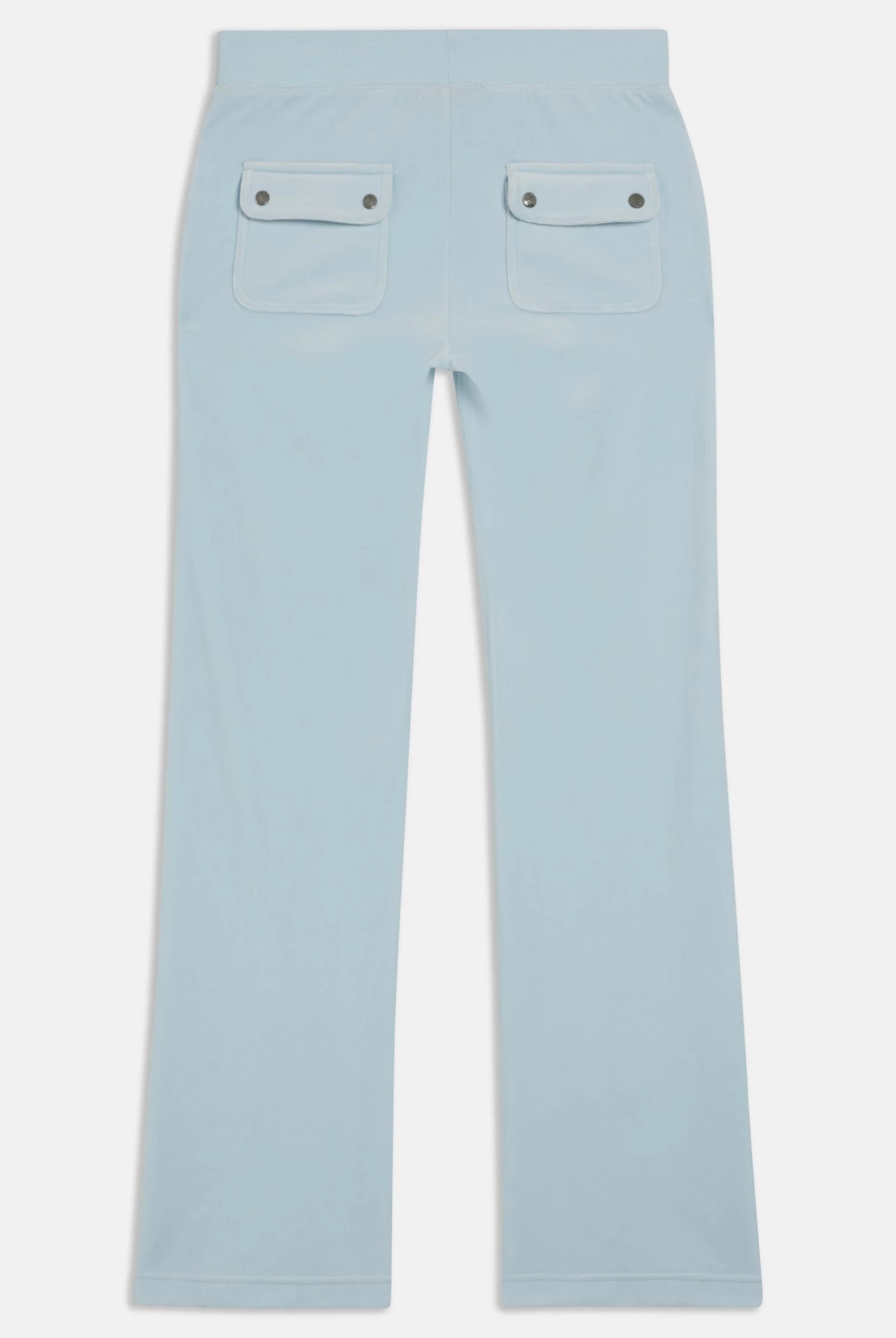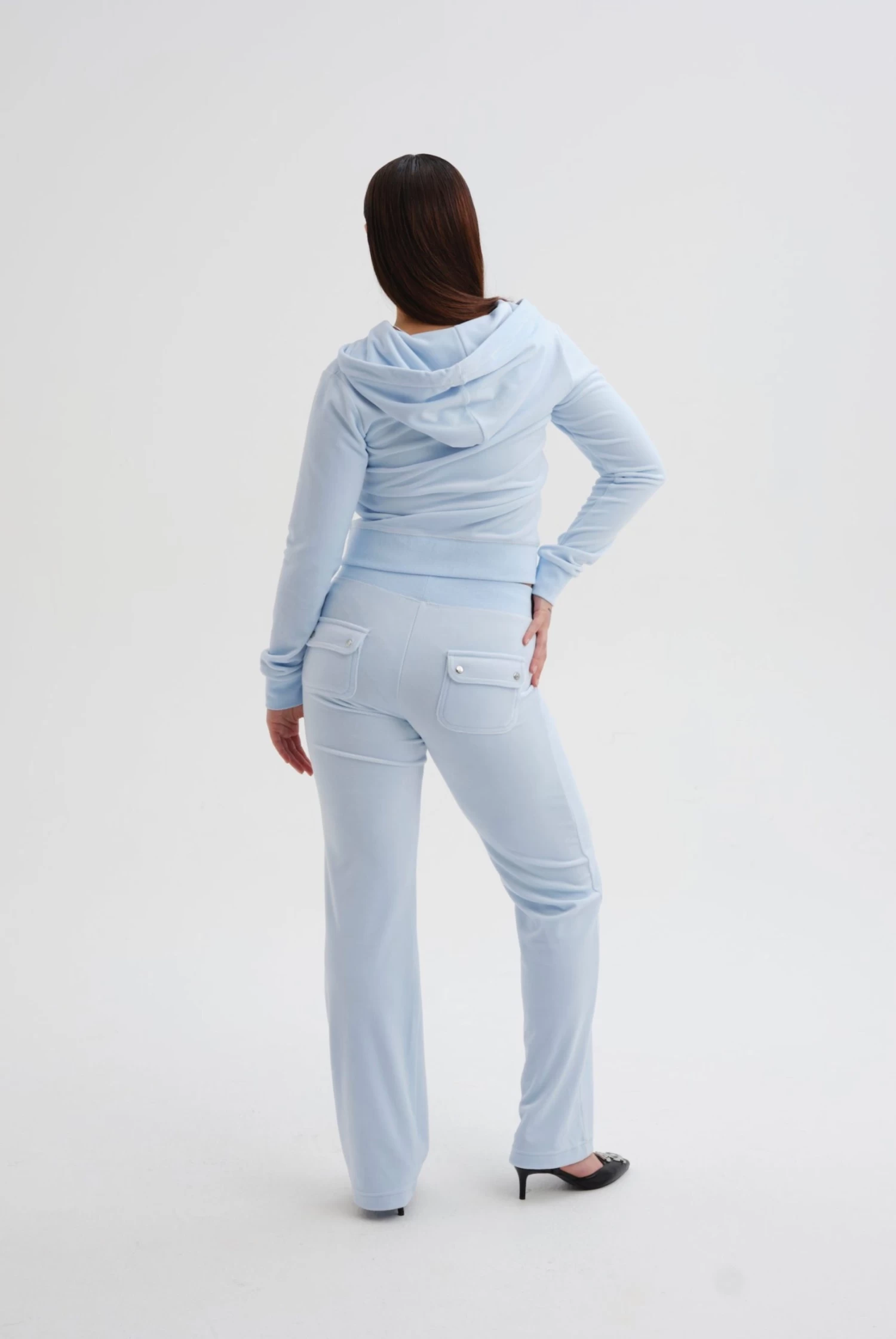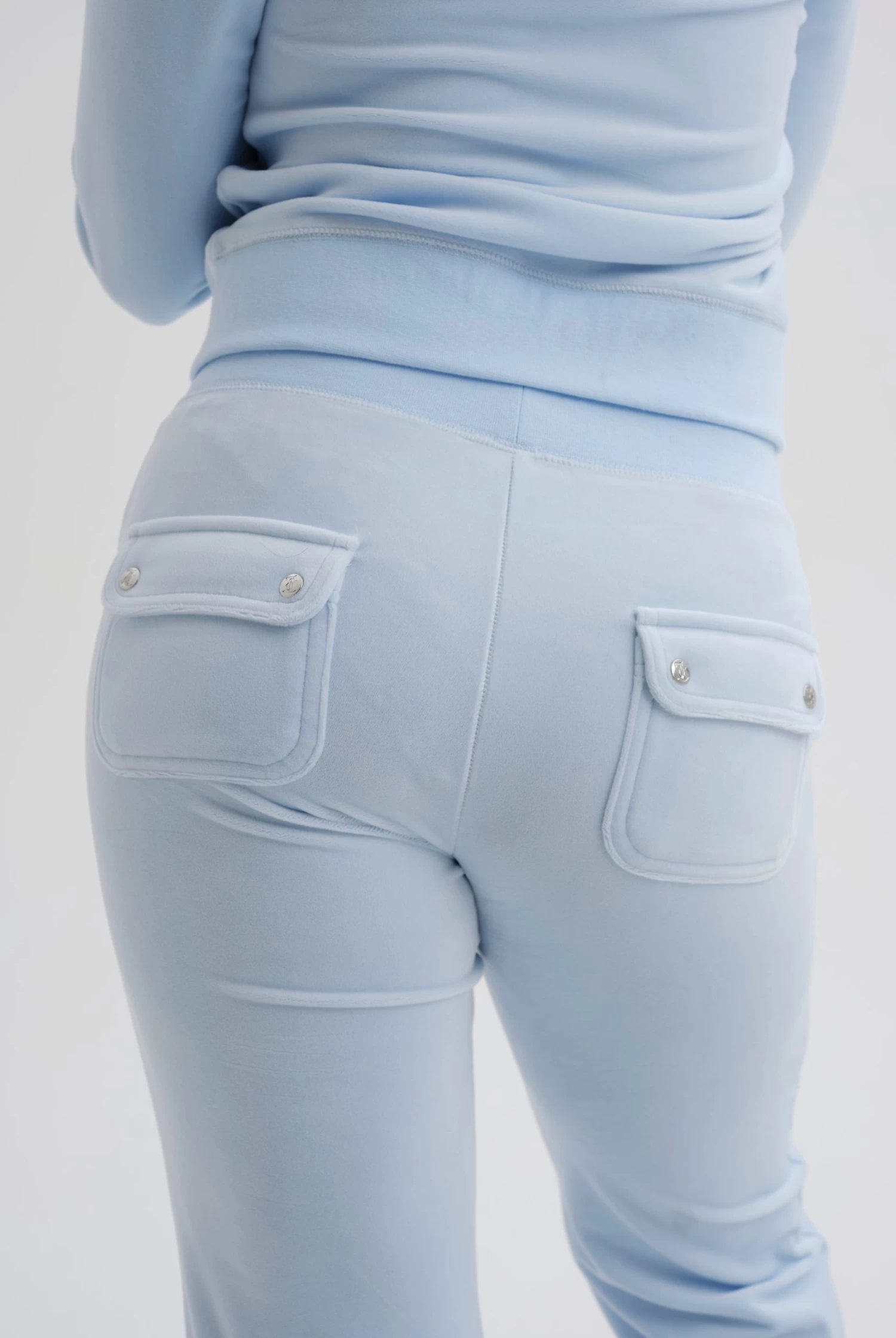 Mid-rise plain tracksuit bottoms in nantucket breeze classic velour. Flared leg fit, with adjustable drawstring ribbed waist and front feature patch pockets. These Black Label joggers feature back popper fastening pockets, silver branded hardware and are finished with a tonal embroidered JC logo at the hip. Pair with the Robertson hoodie for the full iconic tracksuit staple.