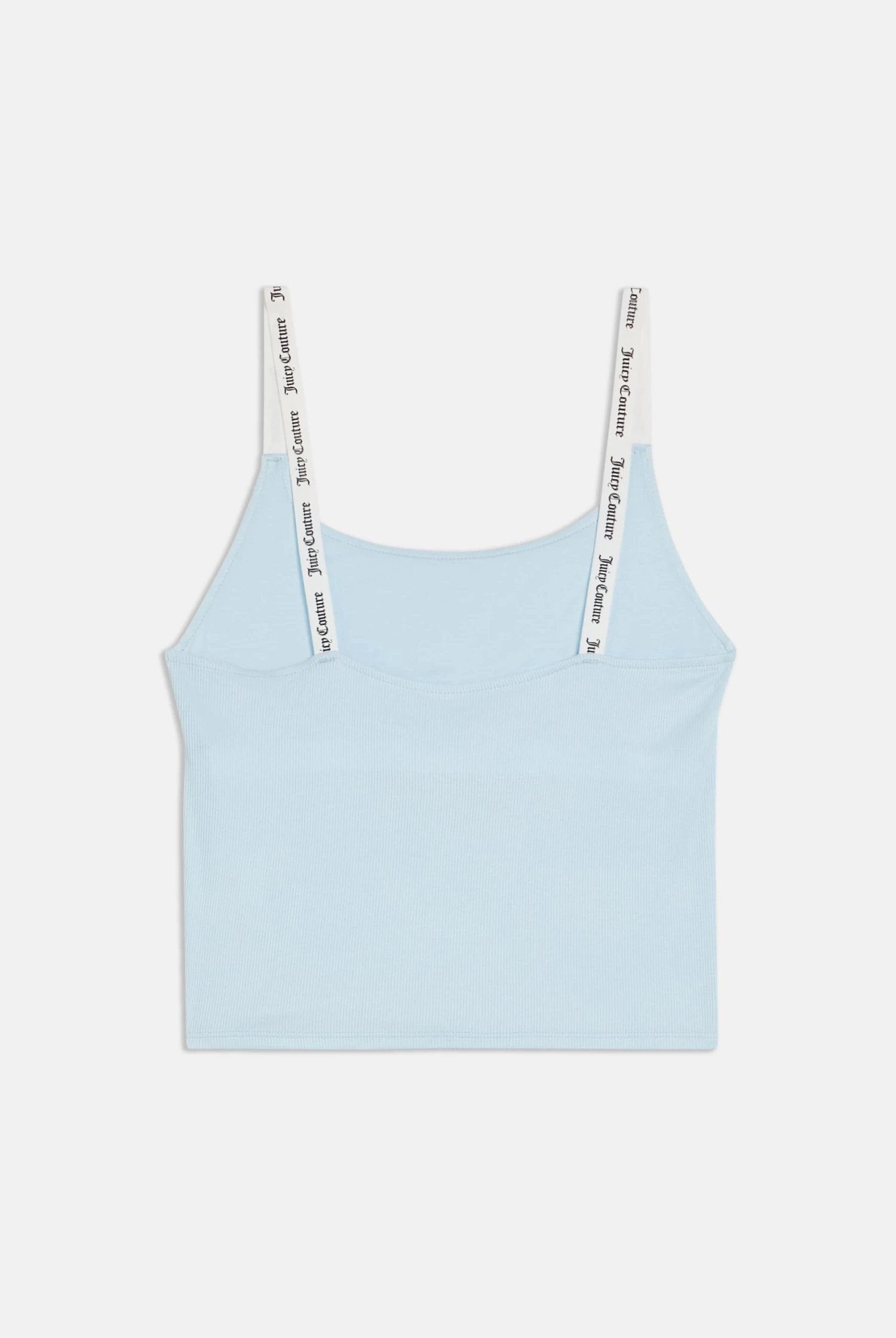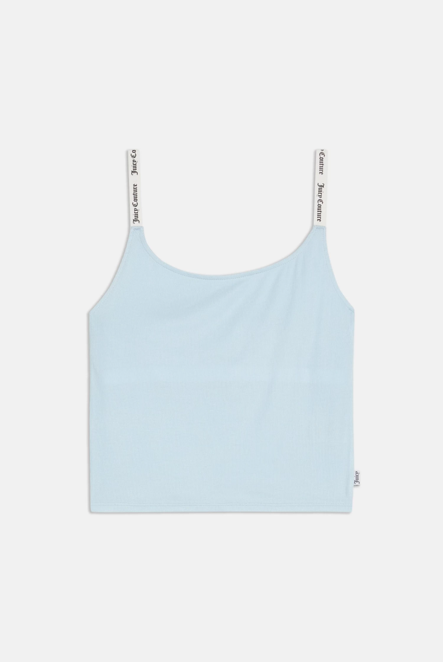 Vest top in nantucket breeze rib jersey. This tank features a shelf bralette insert for added support, jacquard elastic straps and a flag label branding on hem. Pair with the matching flares to complete this ribbed lounge look.