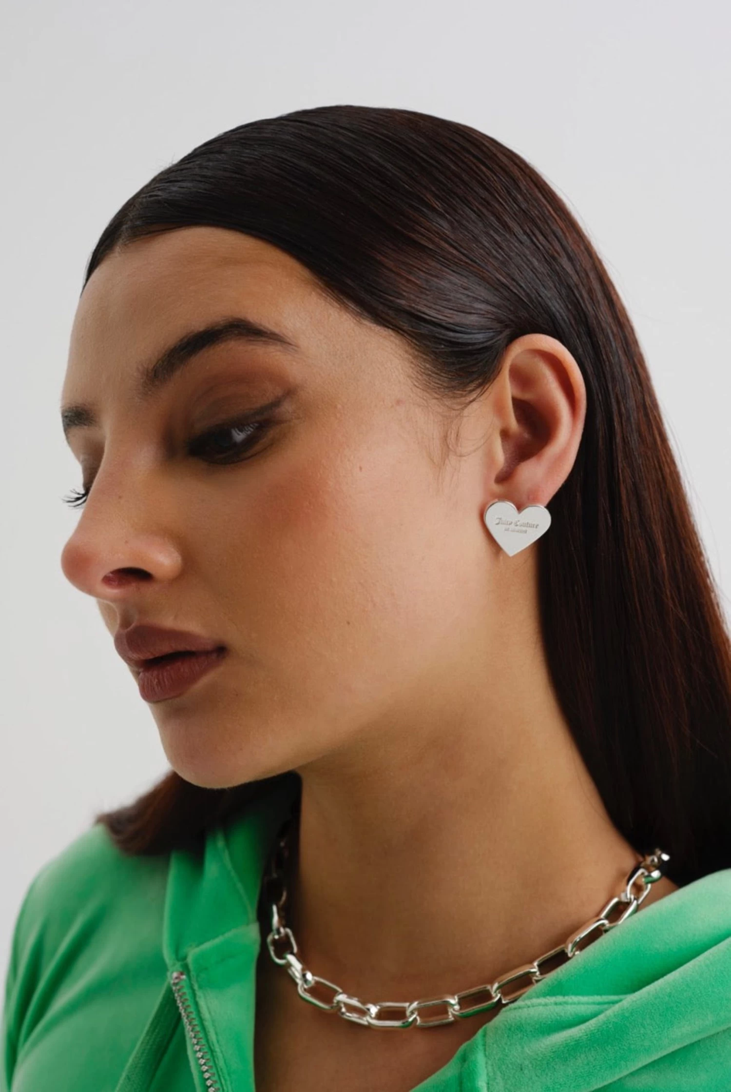 Silver plated maxi heart stud earrings featuring the Juicy Couture logo engraved to the centre of the hearts. Pair with the Maxi Heart Pendant to complete the look.