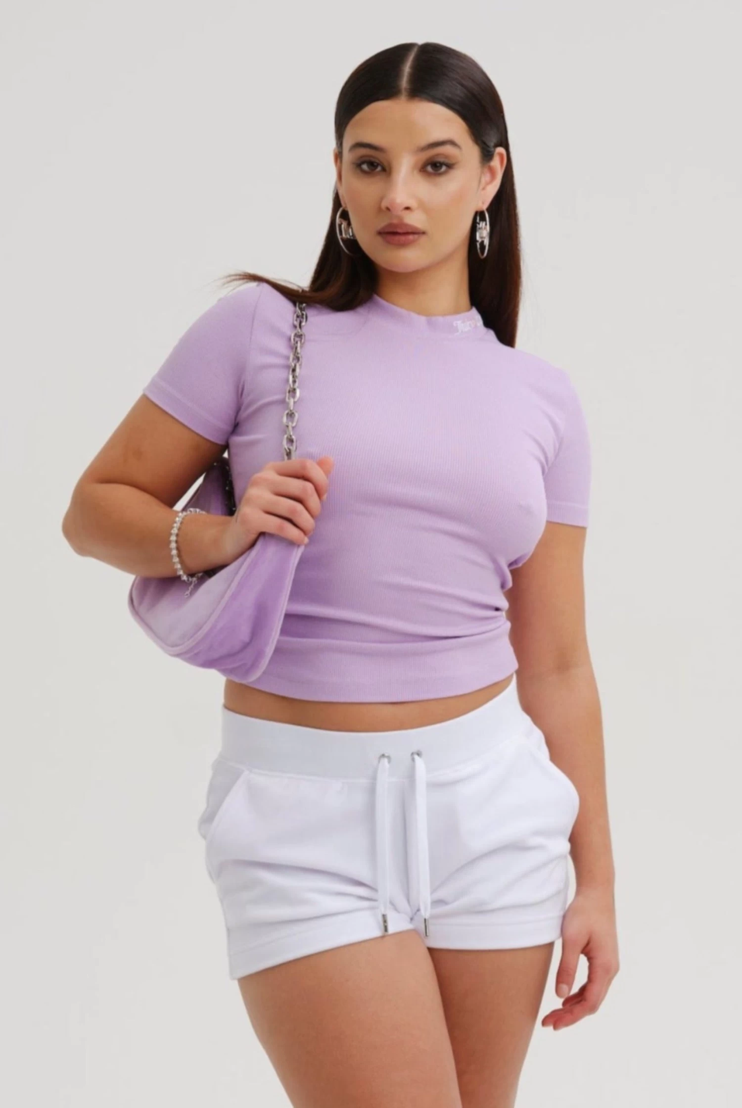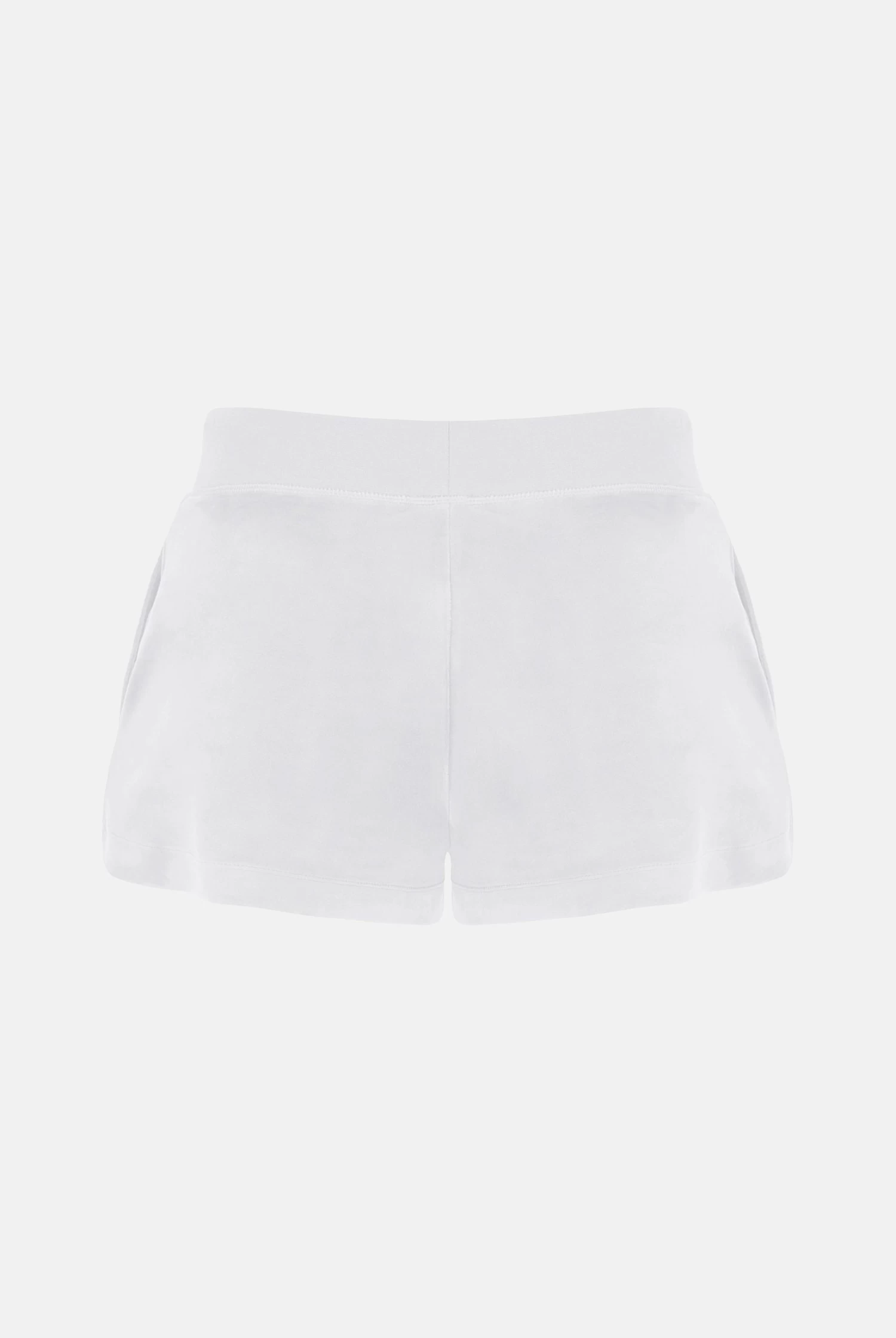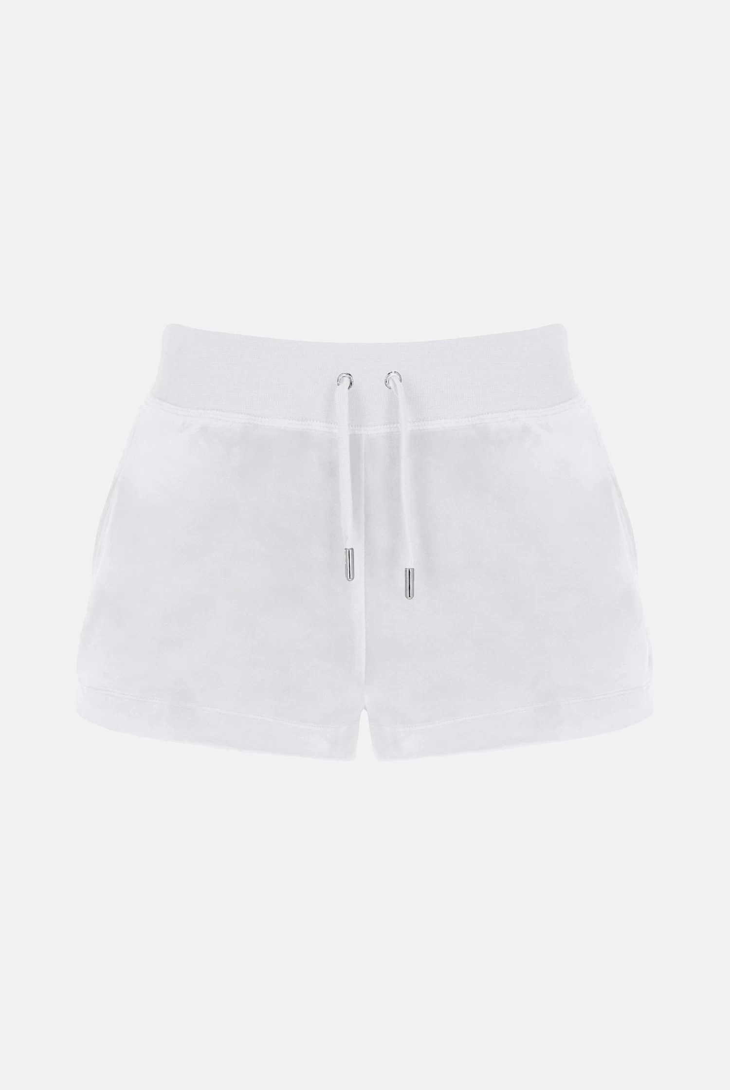 Mid-rise plain shorts in white classic velour. A short flirty fit, with adjustable drawstring ribbed waist and front angled pockets. These iconic core track shorts are branded with silver hardware and a tonal embroidered JC logo at the hip. Pair with the Robertson hoodie for a summer update on the staple tracksuit.